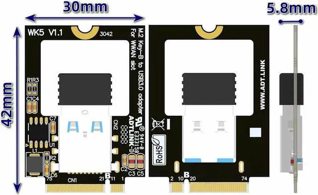 • Product Name: M.2 B-key WWAN 4G network card slot to USB3.0 interface adapter board.