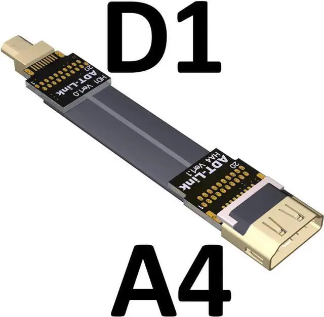 ADT-LINK FPV Cable for HDMI Micro Mini Flat Camera Connector 5cm-50cm Flexible Wire Line 18Gbps 4K@50/60 2160p for HDMI2.0 for FPV Camera (45cm,A4-D1)