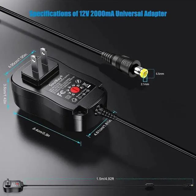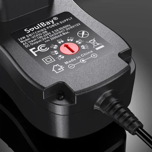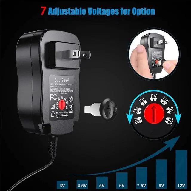 [Upgraded Version] SoulBay Universal AC/DC Adapter Multi-Voltage Regulated Switching Power Supply with 8 Selectable Adapter Plugs, for 3V to 12V Home Electronics, 2Amps Max - OEM