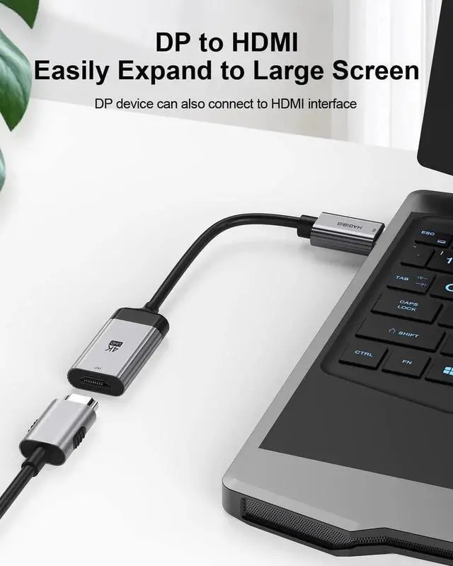 Unidirectional DP to HDMI: Hagibis DisplayPort to HDMI adapter connects DisplayPort (DP, DP++, DisplayPort++) equipped devices like desktop or laptop to monitor, display, projector and HDTV for audio and video streaming. An HDMI cable is needed. NOTE: It can only transmit signal from DP to HDMI. Does NOT support HDMI to DP