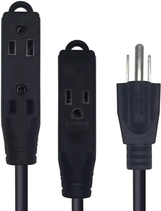 Heavy Duty Nema 15 Amp to 20 Amp Household AC Power Extension Cord UL/ETL Listed Nema 5-15P/5-20P to 5-15R/5-20R AC Plug Adapter 18AWG 125V 15A (1FT 5-15P to 3 * 5-15R UL Black)