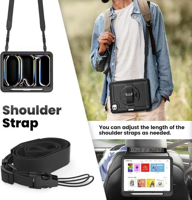 - Versatile Adjustable Shoulder Strap and Wireless Charging Support: Enhancing portability, the case includes a thoughtfully designed, fully adjustable shoulder strap. This allows users to carry their device hands-free, comfortably adjusting the length to suit their body size or preferred carrying style.
