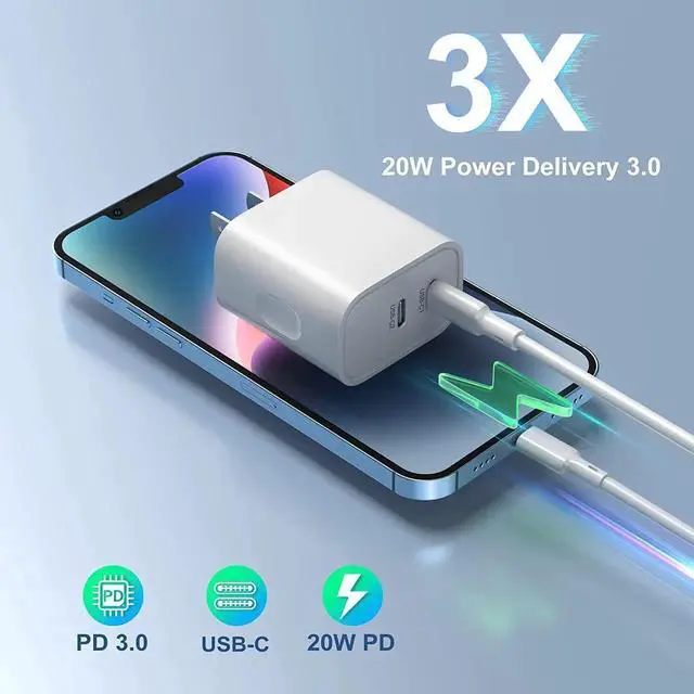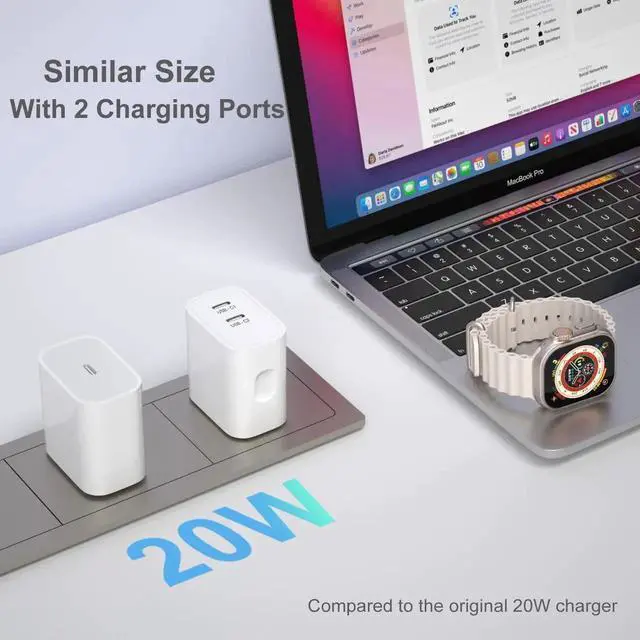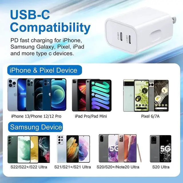 ?20 Watt Power DeliveryWith PD 3.0 technology, this USB C Charger block can offer a total of 20 Watt charging power. When using one USB C port, the PD enabled device can get max 20W power delivery. While two ports charging together, it will work as a normal wall charger, with each output less than 5V/2A.