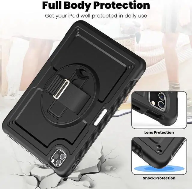 for iPad Pro 11 inch Case & iPad Air 5th/4th Generation Case with Pencil Holder/Screen Protector/Hand Strap Stand, Protective Drop Proof Case for Pro 11 4th/3th/2nd/1st & Air 5/4 - Black
