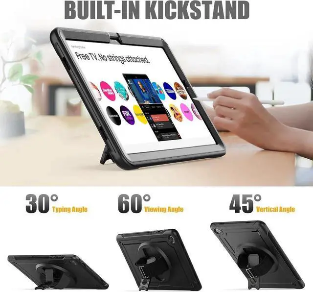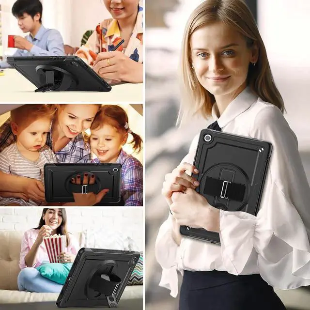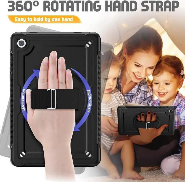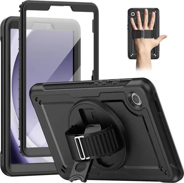 Case for Galaxy Tab A9 Plus Case 11 Inch, Protective with Screen Protector/Rotating Stand/Hand Strap/Pen Holder, Sturdy Light Galaxy A9 Plus Tablet Case 2023 SM-X210/X216/X218, Black