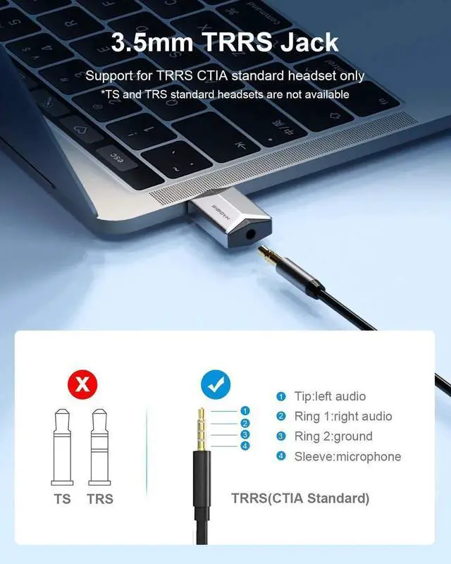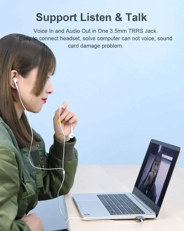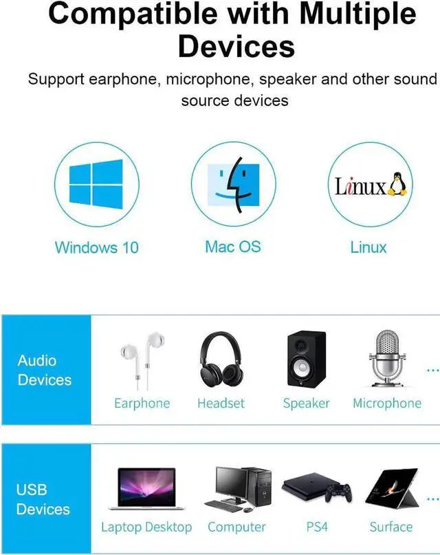 1. External sound card: Enable USB connectivity with your existing 3.5 mm audio headphones, headset, speakers, or microphone
