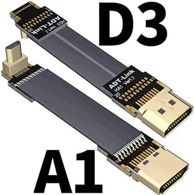 ADT-LINK FPV Cable for HDMI Micro Mini Flat Camera Connector 5cm-50cm Flexible Wire Line 18Gbps 4K@50/60 2160p for HDMI2.0 for FPV Camera (10cm,A1-D3)
