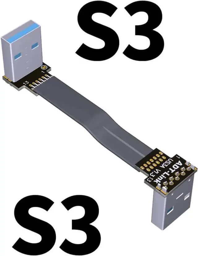 ADT-Link USB 3.0 Cable USB to USB Cable Type A Male to Male Extension Cable Super Speed HDD 90/270 Degree Angle Up/Down Angled (10cm,S3-S3)