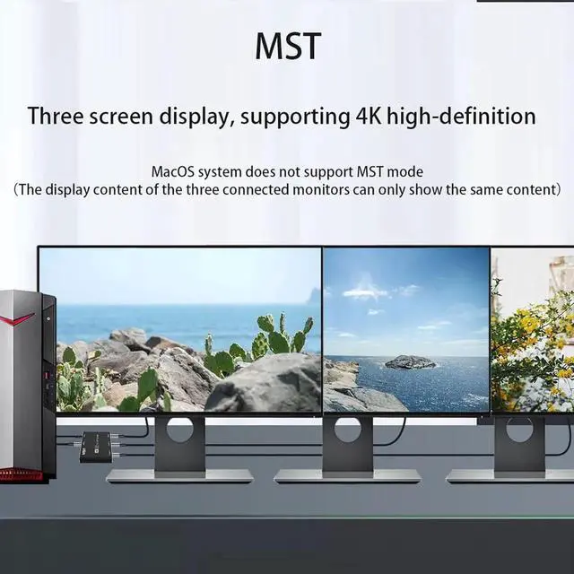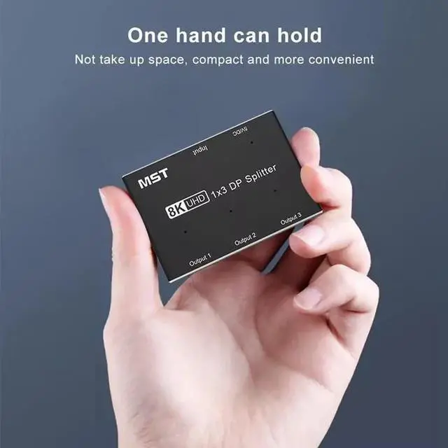 Experience seamless multi-display connectivity with the MST hub 8K DisplayPort Splitter. This cutting-edge device allows you to effortlessly connect one DisplayPort source to up to three DisplayPort displays, enabling you to expand your visual workspace and boost productivity. With support for resolutions up to 8K@30Hz and 4K@120Hz, this splitter delivers exceptional image quality and smooth performance. Its compact design and DP 1.4 compatibility make it a versatile solution for home offices, gaming setups, or professional workstations. Unlock the power of multi-display setups and elevate your visual experience with this reliable and high-performance DisplayPort splitter.