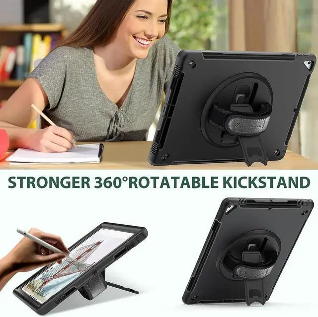 ENHANCED FULL-BODY PROTECTIONCompatible with iPad Pro 12.9 Case 2nd Generation 2017 & 2015 1st Generation Case exceeds 2X Military Grade Drop Test Standard [MIL-STD 810G-516.6], Triple full-body heavy-duty protection provides up to 15ft drop protection, made of 2 durable PC and 1 flexible TPU bumper lasts 10× shock-resistant.