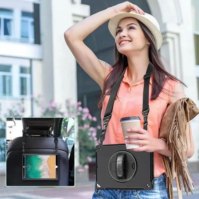 ADJUSTABLE HAND STRAP + SHOULDER STRAPAdjust the tightness of the strap according to the size of the hand, hold the tablet securely and conveniently with one hand. You can carry tablet with shoulder strap and even hang it on your car seat during hiking, traveling other outdoor activities.