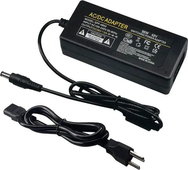 The parameters of 48V 2A adapter: AC input 100-240V 50 60Hz, DC output 48V 2A; wide voltage input, in line with global standards