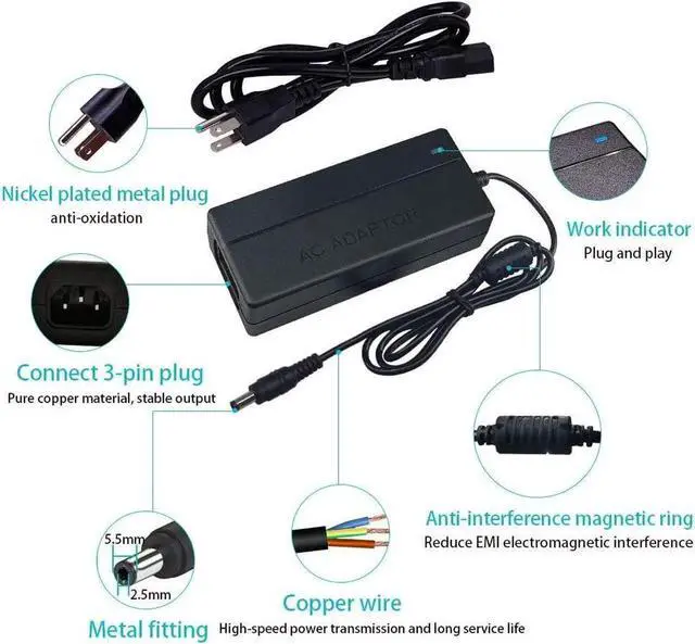 48V 2A power supply DC connector size: 2.5mm inner diameter, 5.5mm outer diameter, dc cable length 90cm/2.95ft; Warning: This adapter CANNOT be used for lithium battery electric bicycles!