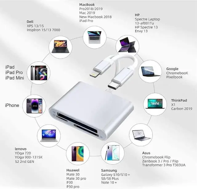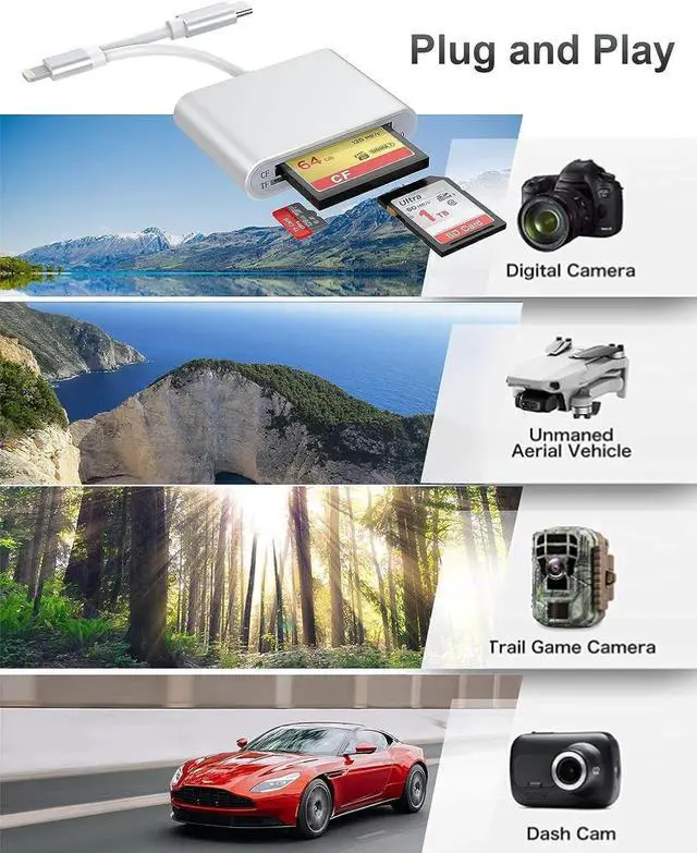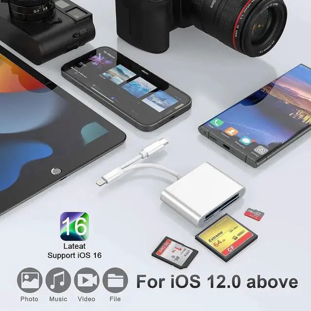iPhone/USB C SD Card ReaderWith i-Phone and USB C ports, The memory card reader support all iPhone with iOS 12.0 and up and iPads with iOS 12.0 or later/OTG Android phone/Computer and other devices with Type-C/ USB-c port, allowing you to easily transfer the files you need between different devices.