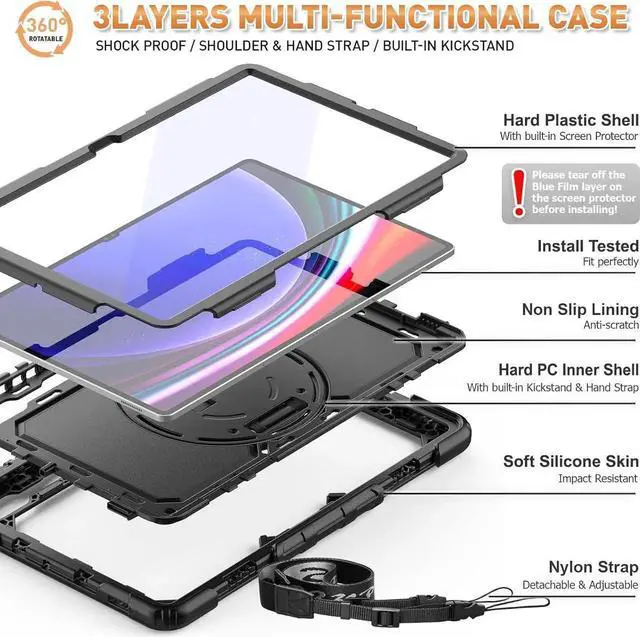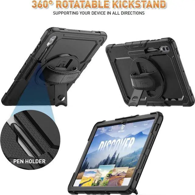 Stand + Shoulder Strap The gorgeous 14.6 inch dynamic AMOLED screen is an amazing way to watch movies or draw your next masterpiece. However, it also needs a free display angle. This case provides a bracket that can rotate 360 stand and adjustable length shoulder strap. The stand can provide multi -angle support. The shoulder strap can hang your tablet somewhere.
