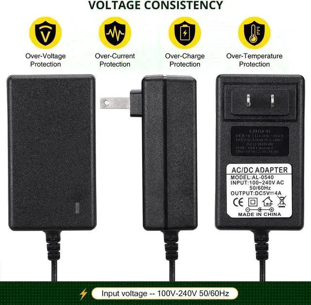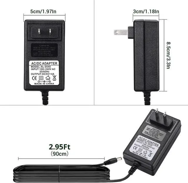 Power Specification-- Power Supply with Input 100-240V- 50/60Hz and Output: 5V/4A (4000mA), 90cm (2.95 feet) Cable Length. Small and lightweight for ease of use as well as ability to take on go.