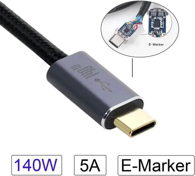 • Type-C USB-C Male to Male USB 2.0 Version Data Cable Support E-Marker 140W for Laptop & Phone.
