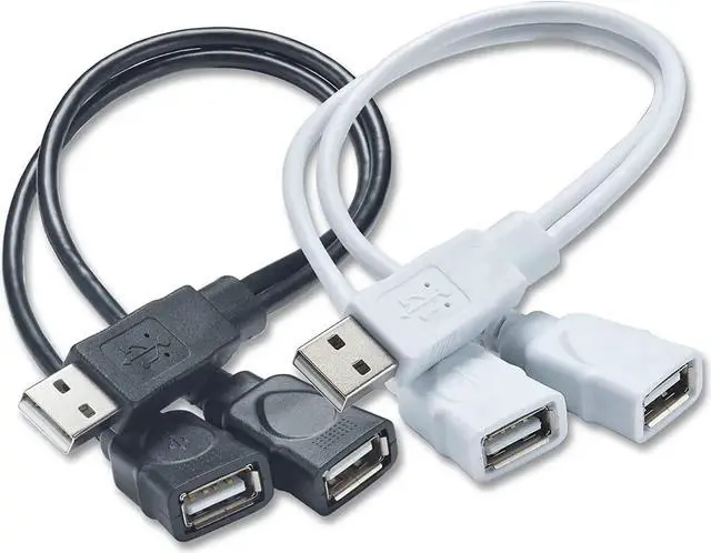 USB Splitter Y Cable,1 Male to 2 Female Extension Cord Connector,Double USB Port Extender,Data&Charger Power Split Adapter for TV,Laptop,PC,Xbox One Series X/S,PS4,LED (2-Pack White&Black)