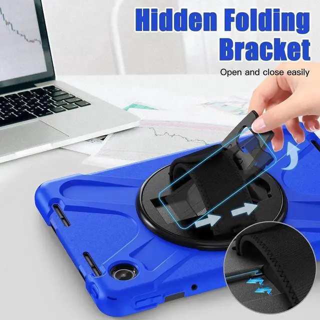 360 Degrees Rotating Stand & Adjustable Hand Strap: On the back side of Case for Tab M11, built-in kickstand can supports your tablet both in horizontal/vertical position and hand strap makes it easy for you to hold the tablet