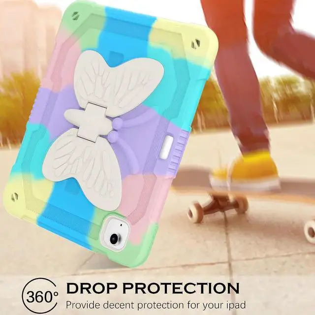 Kickstand DesignSturdy built-in kickstand,when you want to typing, gaming or watching video not have to hold the iPad at the same time