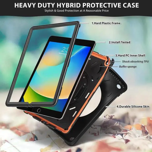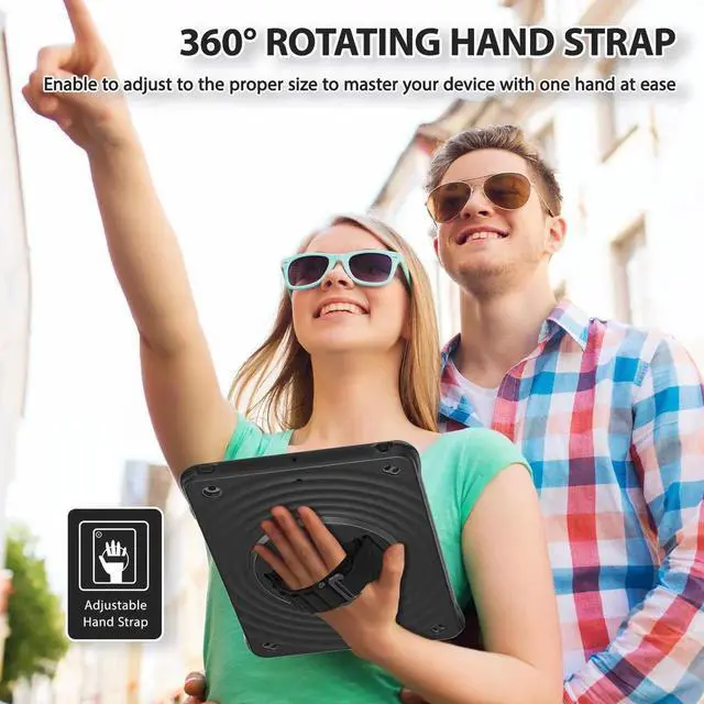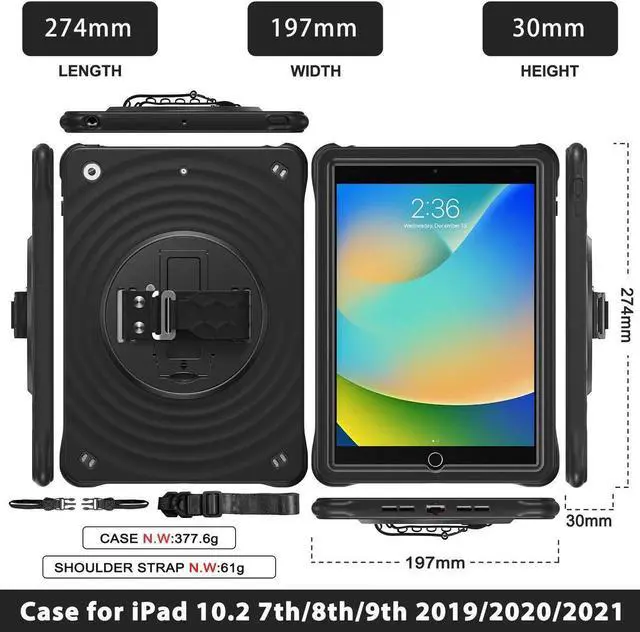 Stand + Shoulder Strap The gorgeous 10.2 -inch Retina display is an amazing way to watch movies or draw your next masterpiece. However, it also needs a free display angle. This case provides a bracket that can rotate 360 stand and adjustable length shoulder strap. The stand can provide multi -angle support. The shoulder strap can hang your iPad somewhere.