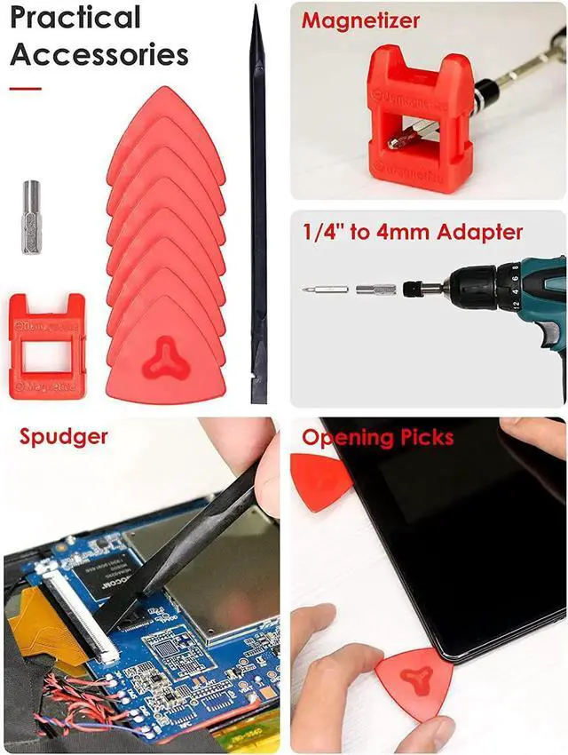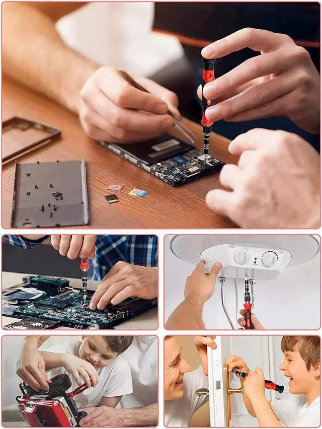 Effective ToolkitThis screwdriver set has 110 different bits(Phillips, Flat Head, Torx, Torx Security, Pentalobe, Hex, Gamebit, etc), which is useful for laptop, PC building, cell phone, tablet, MacBook, iPhone, iPad, game consoles/controller, Ring doorbell, sewing machine, HVAC, knife and more