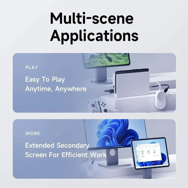 Tablet Becomes Portable Monitor: When Hagibis wireless HDMI video transmitter connected to a gaming?console, iPad and Android tablet can be used as a portable monitor to play games. *Compatible with Switch, PS and XBOX devices that have HDMI output