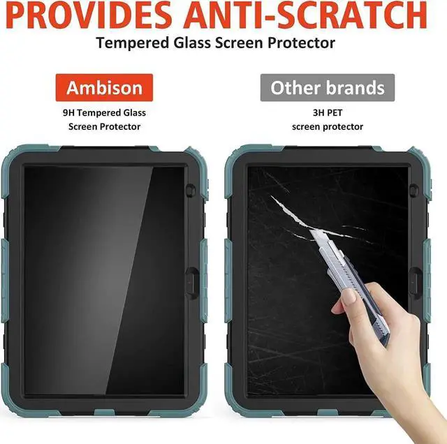 ![Alt view image 5 of 6 - JAENFONG iPad 10th Generation Case, iPad 10 Case 10.9'' 2022, [Kid Proof] Full Body Protective Case with 9H Tempered Glass Screen Protector, 360° Rotatable Kickstand & Hand Strap (Teal & Black)](https://c1.neweggimages.com/productimage/nb640/BK3NS25111305XAHGF5.jpg)