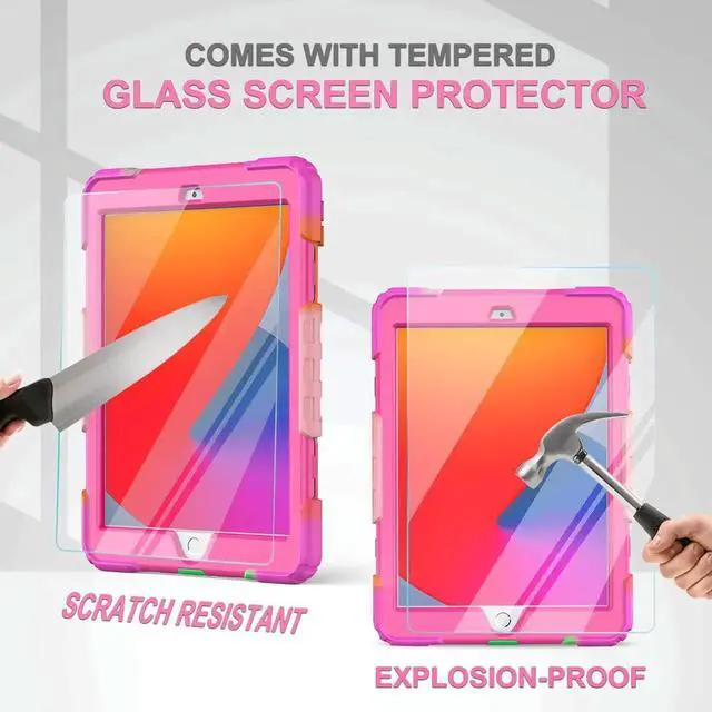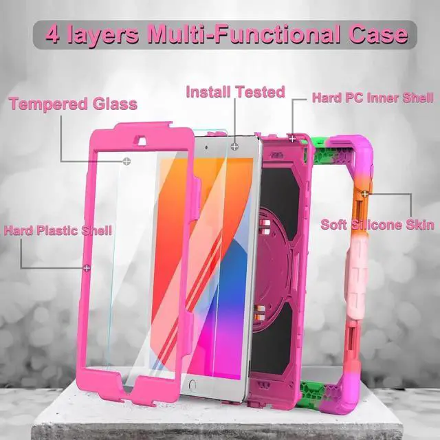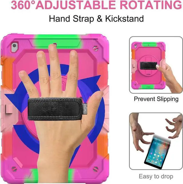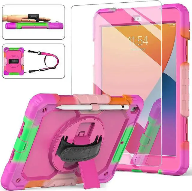 ![Alt view image 7 of 7 - JAENFONG iPad 9th/8th/7th Generation Case, iPad 10.2 Case 2021/2020/2019, [Kid Proof] Full Body Protective Case with 9H Tempered Glass Screen Protector, 360° Rotatable Kickstand & Hand Strap (Pink)](https://c1.neweggimages.com/productimage/nb640/BK3NS25111305YI7V9E.jpg)