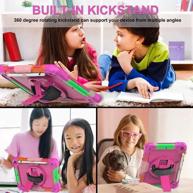 ![Alt view image 6 of 7 - JAENFONG iPad 9th/8th/7th Generation Case, iPad 10.2 Case 2021/2020/2019, [Kid Proof] Full Body Protective Case with 9H Tempered Glass Screen Protector, 360° Rotatable Kickstand & Hand Strap (Pink)](https://c1.neweggimages.com/productimage/nb640/BK3NS25111305YI8HC3.jpg)