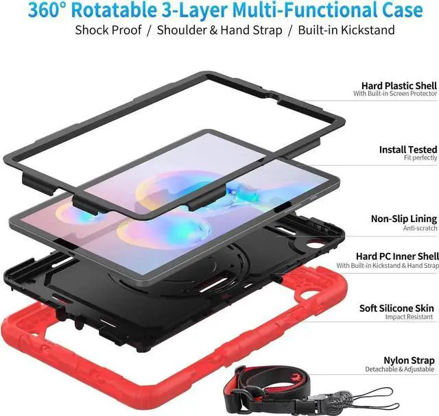 [Full Protection] 3 Layers protective case for Samsung Galaxy Tab S6 Lite 10.4 inch, includes Soft Silicone, hard PC back shell and front frame,cocooning your device well. Hard and Sturdy PC back plate and frame protect your device when it suffers an accidental drops. The thick silicone rubber around the case as a buffer absorbs most of impacts and provides corner protection.