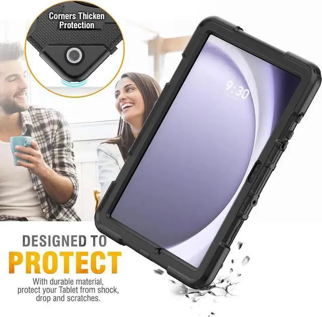 Drop Proof & ProtectorThis Galaxy Tab A9 Plus case is Designed to Protect ! With durable anti shock material, soft silicone, hard shell cover and built-in screen protector (package contains 2 front covers, one with screen protector and one without). Full body sturdy Tab A9 Plus case can keep your Tablet safe from shock, drop, scratch or accidental damages in daily use.