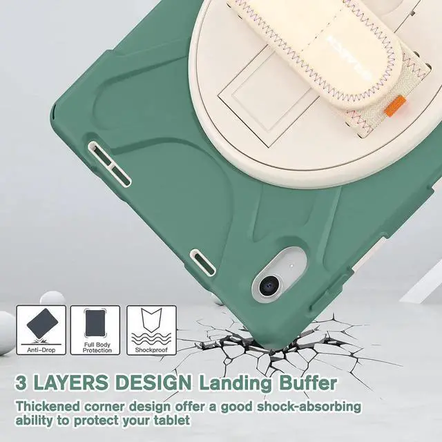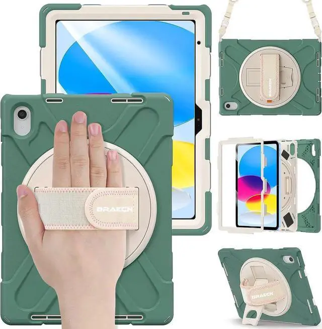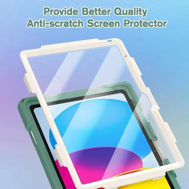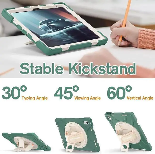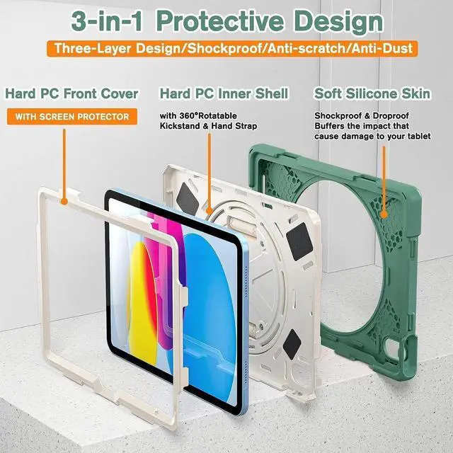 360° Swiveling Stand & Hand Strap Located on the back of apple iPad 10th generation 10.9 Inch shockproof case 2022, built-in 360 degree rotating kickstand and adjustable handle hand strap provides a more flexible and convenient way to use your tablet during work, study or journey, ideal for students,teachers,engineers,cashiers and waiters,etc.