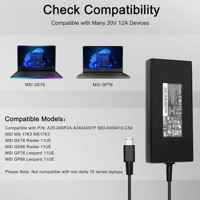 3. Compatible with P/N: A20-240P2A A240A007P S93-0409410-C54 240W Charger