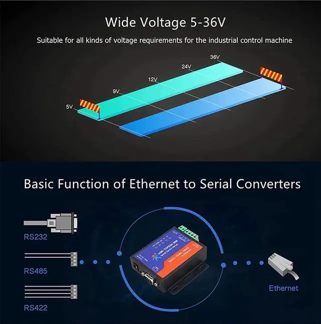Ethernet to serial converters USR-TCP232-306 support both interfaces RS232 and RS485, but can only use one at one time. Simple configuration and easy to use.