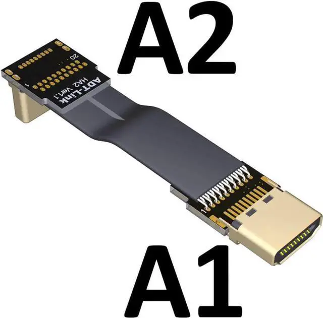 ADT-LINK Flat Slim Angled Standard HDMI 2.0 Male/Female to HDMI 2.0 Male/Female 20 pin FFC FPC Flat Ribbon Elbow Cable 2K/144hz 4K/60Hz for HDTV AV Aerial Photography A1 (1.8m,A1-A2)