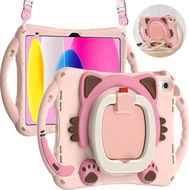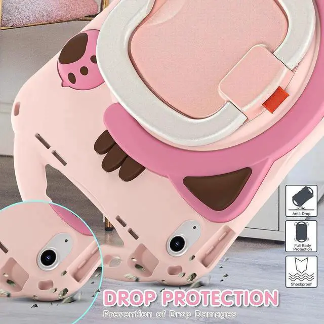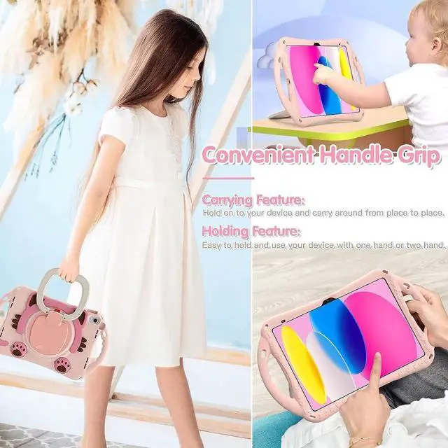 FULL BODY PROTECTION- Made of non-toxic and kids-friendly silicone material.Has a cute cartoon cat style appearance patent design while providing full body protection prevent from drops, shocks, bumps, scratches and dirt. No worry your iPad would slip out of your kids' hands and break. Full access to all ports, buttons and cameras without removing the case.