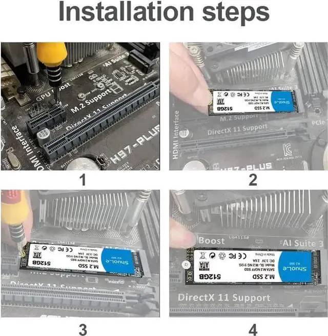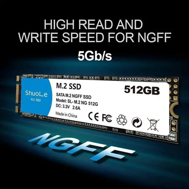 M.2 NGFF Internal SSD Interface type: NGFF interface, Hard drive size M.2, SSD Size 80*22*3.8mm, DC 3.3V 2.6A.