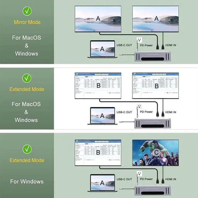 Full-featured and usable docking station - Function Charging, data transfer, video output, audio output, 10/100/1000M ethernet, card reading,USB-C (PD male)×1, USB 3.0×4, USB-C×2, SD3.0×1, TF3.0×1, HDMI×2, RJ 45×1, 3.5mm JACK×1.SD/TF dual card read at the same time, data copy each other.