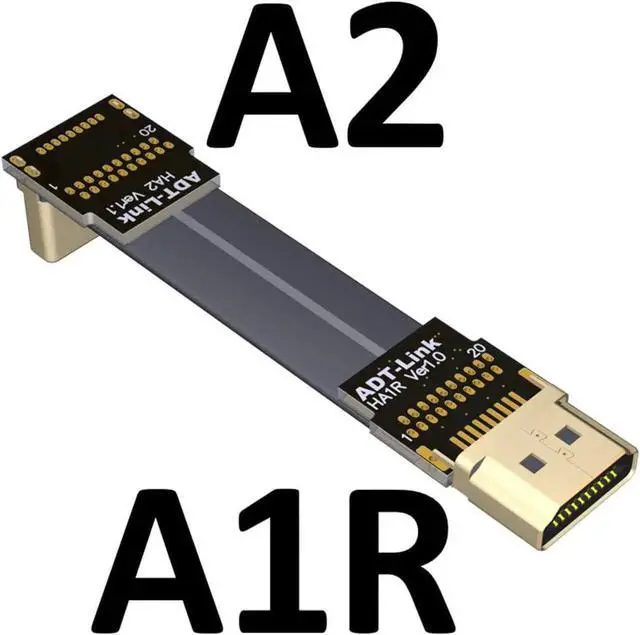ADT-LINK Flat Slim Angled Standard HDMI 2.0 Male/Female to HDMI 2.0 Male/Female 20 pin FFC FPC Flat Ribbon Elbow Cable 2K/144hz 4K/60Hz for HDTV AV Aerial Photography A1 (1m,A1R-A2)