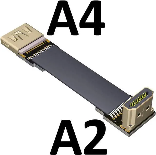ADT-LINK Flat Slim Angled Standard HDMI 2.0 Male/Female to HDMI 2.0 Male/Female 20 pin FFC FPC Flat Ribbon Elbow Cable 2K/144hz 4K/60Hz for HDTV AV Aerial Photography A1 (1.5m,A2-A4)