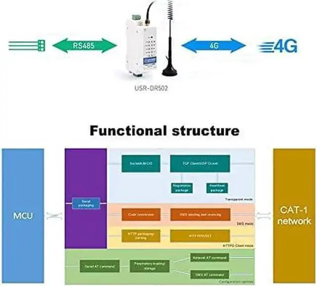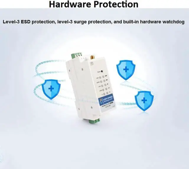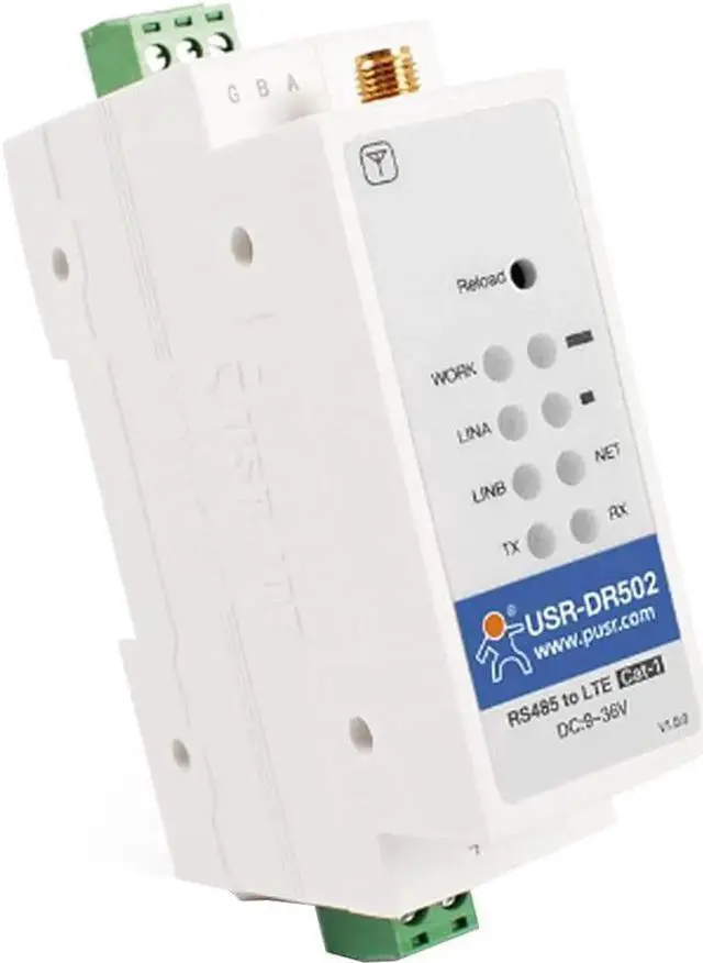 USR-DR502-E Wide Range 4G LTE Cat 1 Modem 9-36V Cost-Effective DIN-Rail with Sim Card Slot Support RS485 Serial Port Built-in 35 Mm DIN Rail Seat (No Power Supply)
