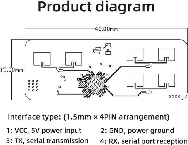 LD2450 Ra·dar Module: A Trajectory Module, which can achieve real-time tracking of the position of the moving target in the detection area, and output the distance, angle and speed information of the moving target in the area through the serial port.