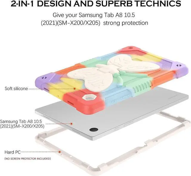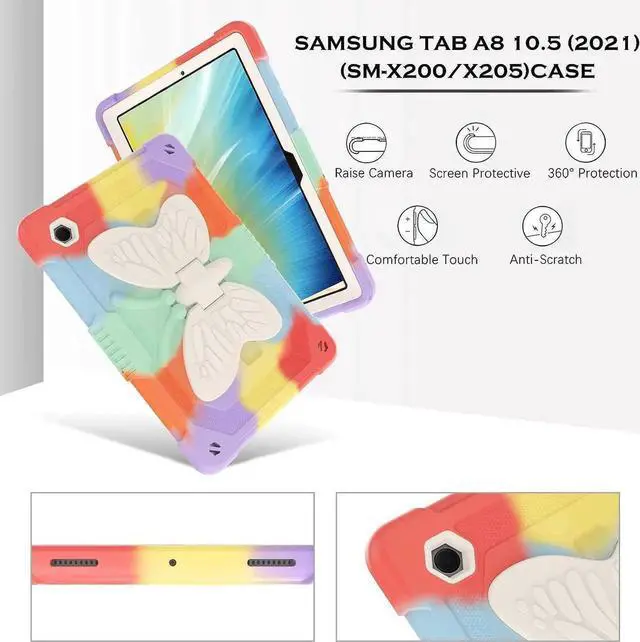 ![Alt view image 6 of 7 - JAENFONG for Galaxy Tab A8 10.5 Case with Butterfly Wings Kickstand Kids Girls Hard Shockproof Protective Smart Tablet Cover for Samsung Galaxy Tab A8 10.5 Inch 2022 [SM-X200/X205/X207],Colorful Red](https://c1.neweggimages.com/productimage/nb640/BK3NS2511130CX8RZ5D.jpg)