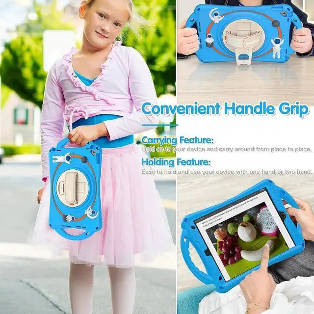 Full Body ProtectionMade of non-toxic and eco-friendly shock absorbing rubber,our iPad 9th/8th/7th Generation 10.2 inch Case offer a good protection from drop and shock whilst provide a good looking with our cute astronaut kids patent design.