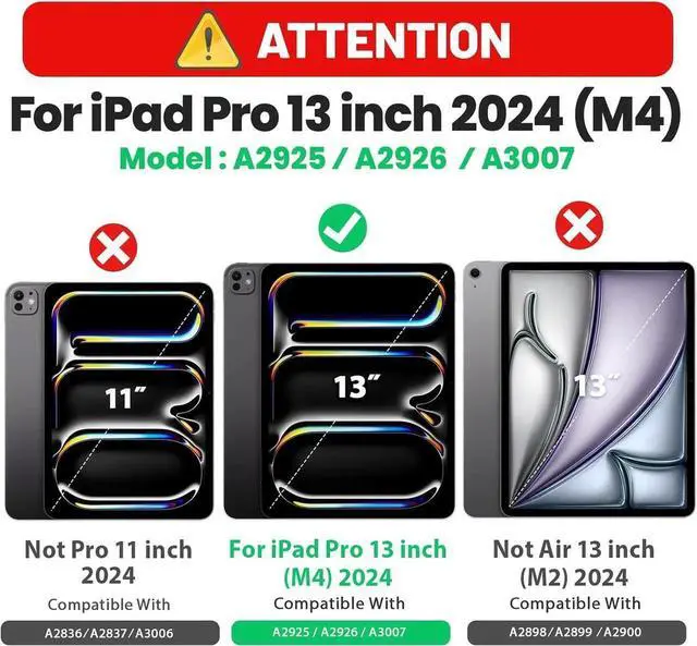 Case for iPad Pro 13 2024ONLY for iPad Pro 13 inch Case/Pro 7th 2024. Model Number (A2925, A2926, A3007). NOT for iPad Air 13 inch. The Pencil is NOT included!