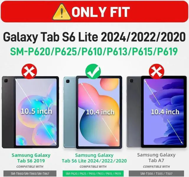 [Compatibility]: Exclusively designed for the Galaxy Tab S6 lite 10.4 inch 2024/2022/2020 tablet(Model: SM-P620/SM-P625/SM-P627/SM-P610/SM-P615/SM-P613/SM-P619). Please check the model number before purchasing. Go to "Settings" > "About" > "Model Number", you'll see the model number: SM-P6**