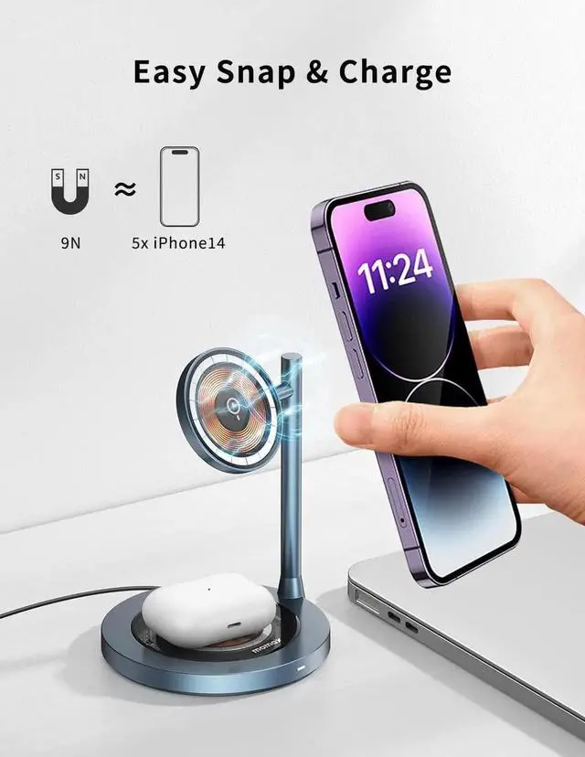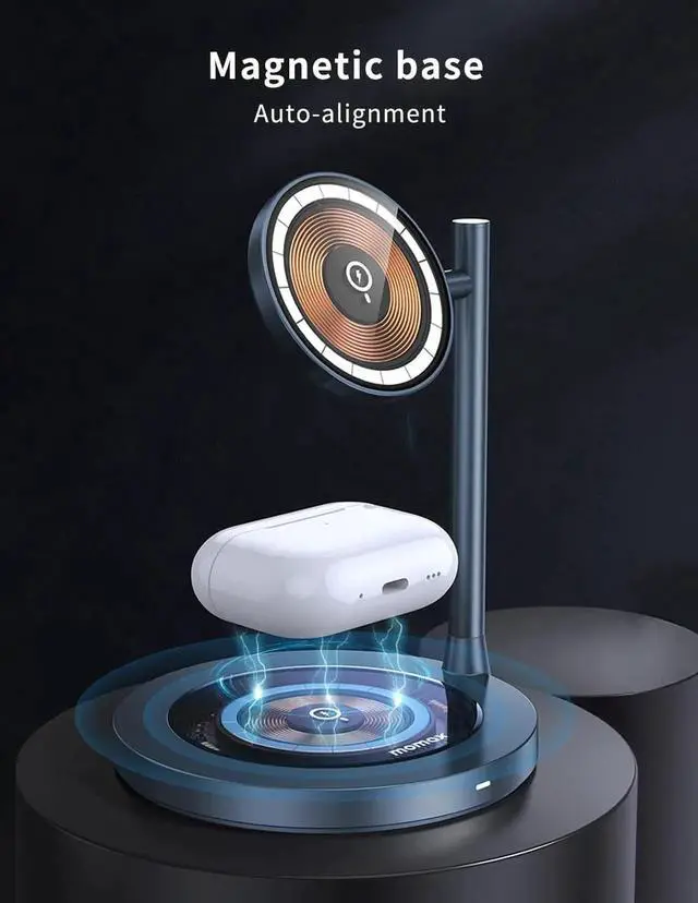 [Unique Cyberpunk Look] Unlike other products on the market, MOMAX Wireless Charger Stand has a unique cyberpunk design style. The transparent tempered glass and high-quality aluminum body make it not just a charging stand on the table, but a gorgeous decoration, a piece of art