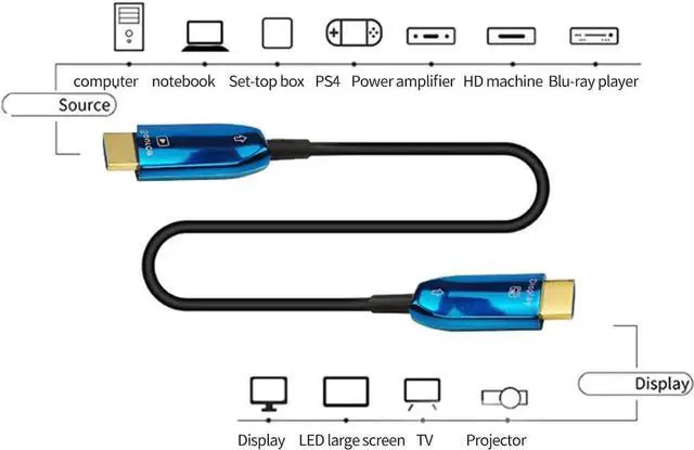 8K@60HZ Optical Fiber DP Cable 32Gbps/48Gbps 250mw High Speed Silicon Line Chip (4:4:4 HDR/RGB eARC HiFi) Compatible with HDMI Device Computer PS4/3 UHD TV Xbox One Projector (2.1 Version,15m)