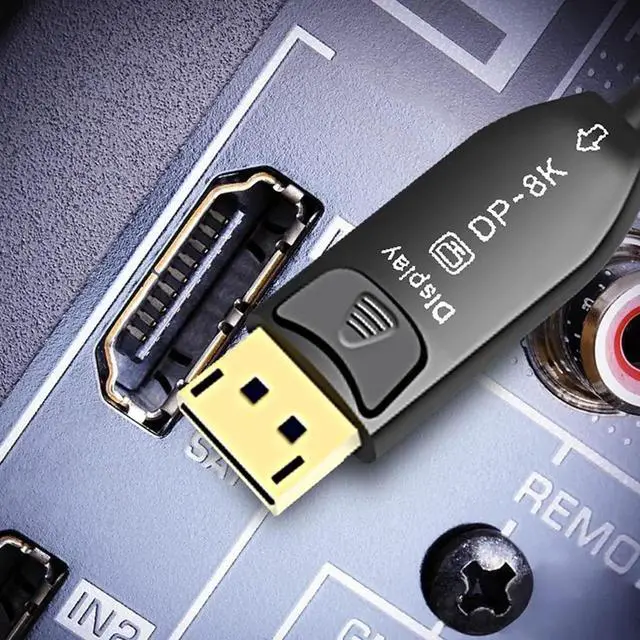 8K@60HZ Optical Fiber DP Cable 32Gbps/48Gbps 250mw High Speed Silicon Line Chip (4:4:4 HDR/RGB eARC HiFi) Compatible with HDMI Device Computer PS4/3 UHD TV Xbox One Projector (1.4 Version,10m)